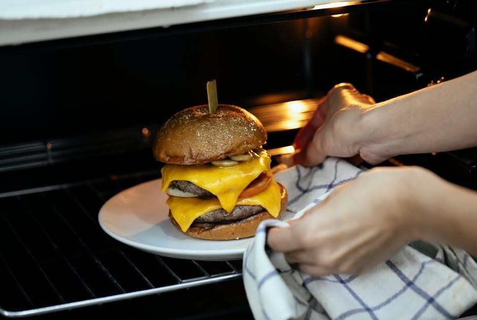 Proper placement is crucial for safety and functionality. The Maytag Gemini Double Oven must be installed in a well-ventilated area, away from flammable materials. Ensure it is placed on a level, stable surface to prevent tipping. Avoid installing near water sources or in confined spaces. The oven should not be positioned directly under a window or in an area exposed to extreme temperatures. Maintain a minimum clearance of 1 inch on the top and sides for proper airflow. Ensure the oven is accessible for maintenance and cooking. Follow the manual’s specific guidelines for installation height to accommodate comfortable usage. Proper placement ensures optimal performance, safety, and longevity of the appliance.